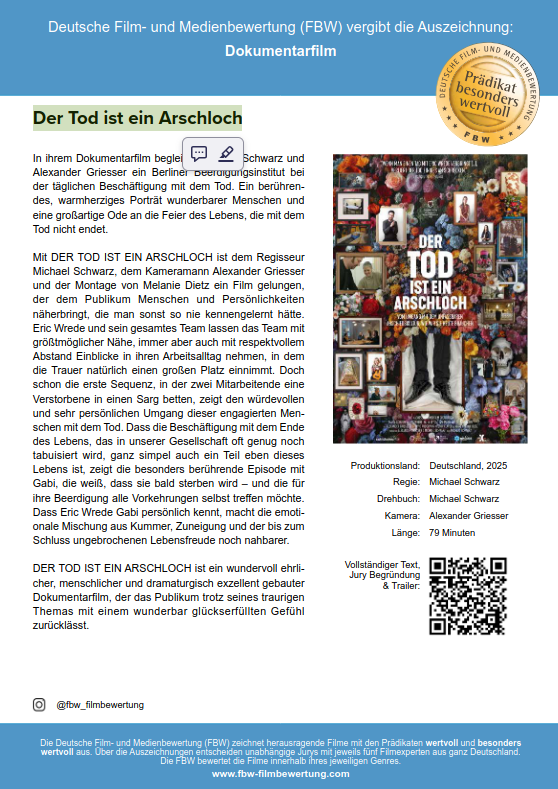 Der Tod ist ein Arschloch - Kooperation Hospiz und Kino 5. März 2026 17:30 Uhr – Am 05.03.1996 wurde der Hospizverein Deggendorf gegründet. Zum Auftakt laden wir Sie ein einen besonderen Film zu sehen der das Thema Tod und Sterben aus der Tabuzone holen möchte. Ort: Lichtspielhaus Deggendorf iCal • Google